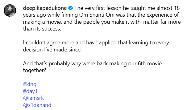 దీపికా పదుకొణె, షారుక్ ఖాన్ కాంబో సూపర్ డూపర్ హిట్ అని ఎన్నో సార్లు ప్రూవ్ అయ్యింది. ఇక ఇప్పుడు ఆరోసారి జంటగా మరో సినిమా చేయబోతున్నారు.సిద్ధార్థ్ ఆనంద్ డైరెక్షన్ లో వస్తోన్న కింగ్ సినిమాలో వీరిద్దరూ కలిసి నటిస్తున్నారు. ఈ విషయాన్ని దీపికా అఫీషియల్ గా అనౌన్స్ చేస్తూ ఒక పోస్ట్ పెట్టింది. 18 సంవత్సరాల క్రితం ఓం శాంతి ఓం సినిమా చేస్తున్నప్పుడు షారుఖ్ నాకు మొదటి పాఠం నేర్పారు. ఒక సినిమాతో మనం ఏం నేర్చుకున్నాం.. ఎవరితో కలిసి పనిచేస్తున్నామనే విషయాలే ఉన్నాయి. ఒక సినిమా విజయం కంటే ఎంతో ముఖ్యమైన విషయాలను చెప్పారు. ఆ మాటలనే ఇప్పటికీ నమ్ముతాను. ఆ రోజు నుంచి నేను తీసుకునే ప్రతి నిర్ణయం వెనక ఆ పాఠాన్నే ఇంప్లిమెంట్ చేస్తున్నాను…అందుకే మేము మళ్ళీ కలిసి 6వ సినిమా చేస్తున్నాము అంటూ తెలపింది. కల్కి సినిమా నుంచి దీపికను తప్పించిన తర్వాత ఆమె ఈ పోస్ట్ చేయడంతో నెట్టింట వైరల్ అవుతుంది. తన పోస్ట్ తో కల్కీకి దీపిక కౌంటర్ ఇచ్చిందటూ నెటిజన్స్ కామెంట్లు చేస్తున్నారు.